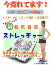 送料500円3000円以上で送料無料!激安セール販売!1日1分からの新健康習慣!「健康習慣ストレッチャー」価格: 2,468円レビュー評価: 5.0 レビュー数:1 1台で3役ストレッチ・足ツボ刺激・背筋伸ばし ストレッチ&シェイプアップ 健康習慣 ストレッチャー ■仕 様 ■価 格 サイズ 脚ステレッチ時:(約)31×29.2×17.2cm背中ステレッチ時:(約)33.15×29.2×9.5cm 重 量 (約)1150g 材 質 本体:ABS樹脂アジャスターA・B、ストッパー、ピン:ポリプロピレンプロテクター、アジャスターBカバー:エラストマー 耐荷重 100kg 生産国 日本 JAN 4960380105671 個装サイズ (約)33×29.5×9.5cm 個装重量 (約)1300g 入 数 12 3,150円(税込)本体価格:3,000円 |